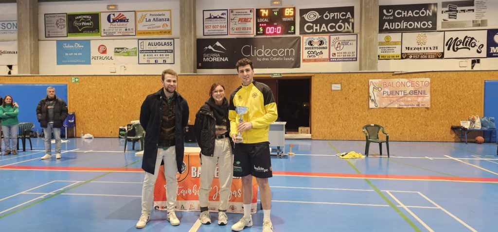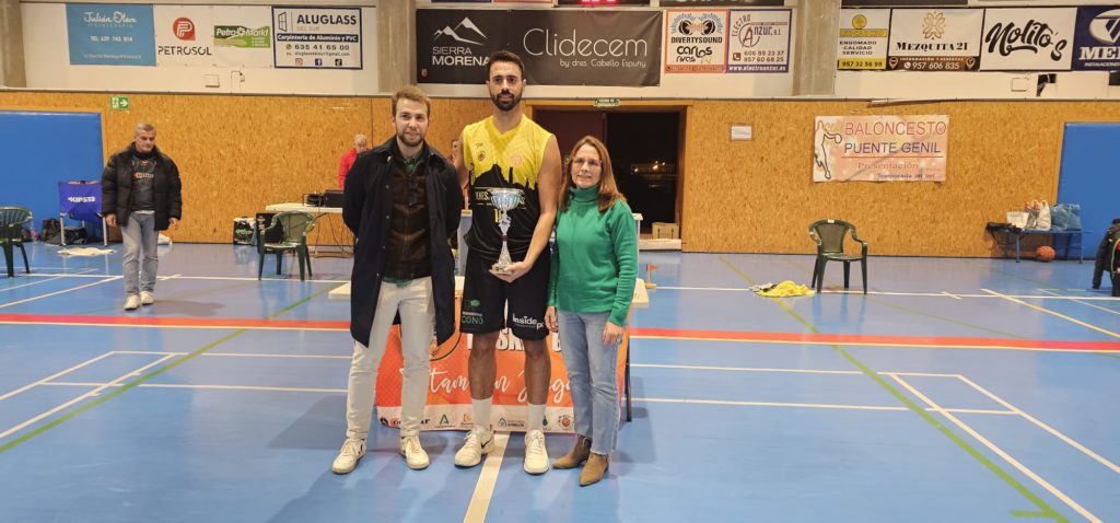 Buen ambiente en el Pabellón Joaquín Crespo “Quini” de Puente Genil, donde regresaba Alberto Rueda a la que ha sido su casa varias temporadas quien ahora comparte dirección técnica con Tripi en el Peñarroya. Rafa Sánchez recogió el trofeo de ganador y Pepe Varo se hizo acreedor de otro galardón como MVP del partido